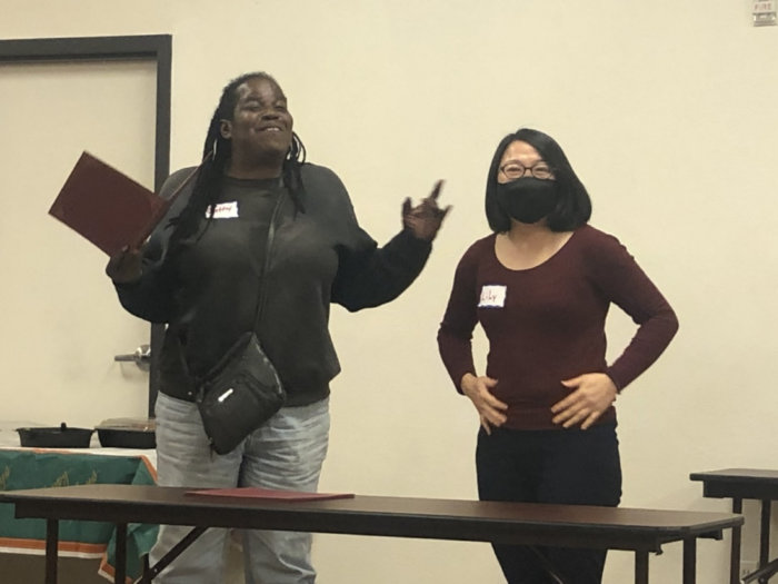 Resident leader Cathy Eberhardt and EBALDC staff Lily Hu