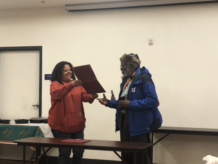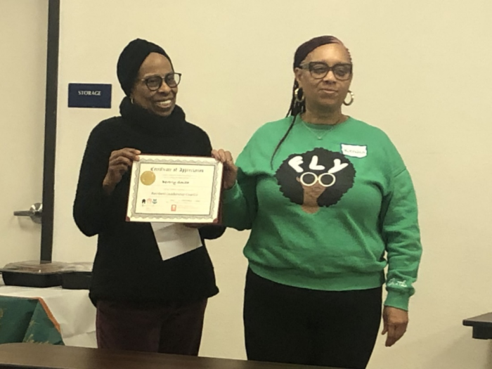 The Community Room at Jack London Gateway (JLG) Housing buzzed with energy on a recent Wednesday evening. Residents and staff gathered to recognize the work of the Resident Leadership Council in West Oakland, East Oakland, and Chinatown. The warmth and friendship in the room crackled like electricity as residents greeted each other with smiles and hugs.