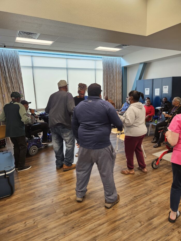 Occasionally, seniors even go on field trips! For example, earlier in the spring, Nakia had arranged for a group of senior residents from San Pablo to visit the Oakland Zoo. “This was a special trip because most of the residents had never been to the zoo or it had been years since they last visited the zoo.” On September 28th, another group of seniors from San Pablo Hotel attended the 20th Annual Healthy Living Festival at the Oakland Zoo. Says Nakia, “Residents enjoyed the day out surrounded by many educational booths and information about senior services available in Oakland. A healthy lunch was provided, as well as dancing and activities where residents were able to win prizes.”
