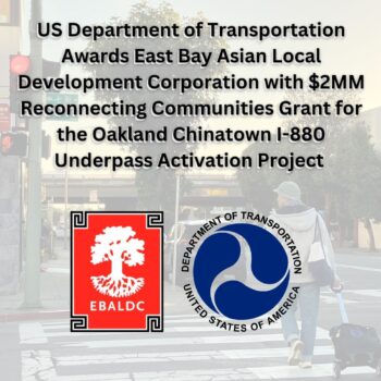 OAKLAND, CA – The East Bay Asian Local Development Corporation (EBALDC) announced receipt of the US Department of Transportation Reconnecting Communities Pilot Grant of $2 million.